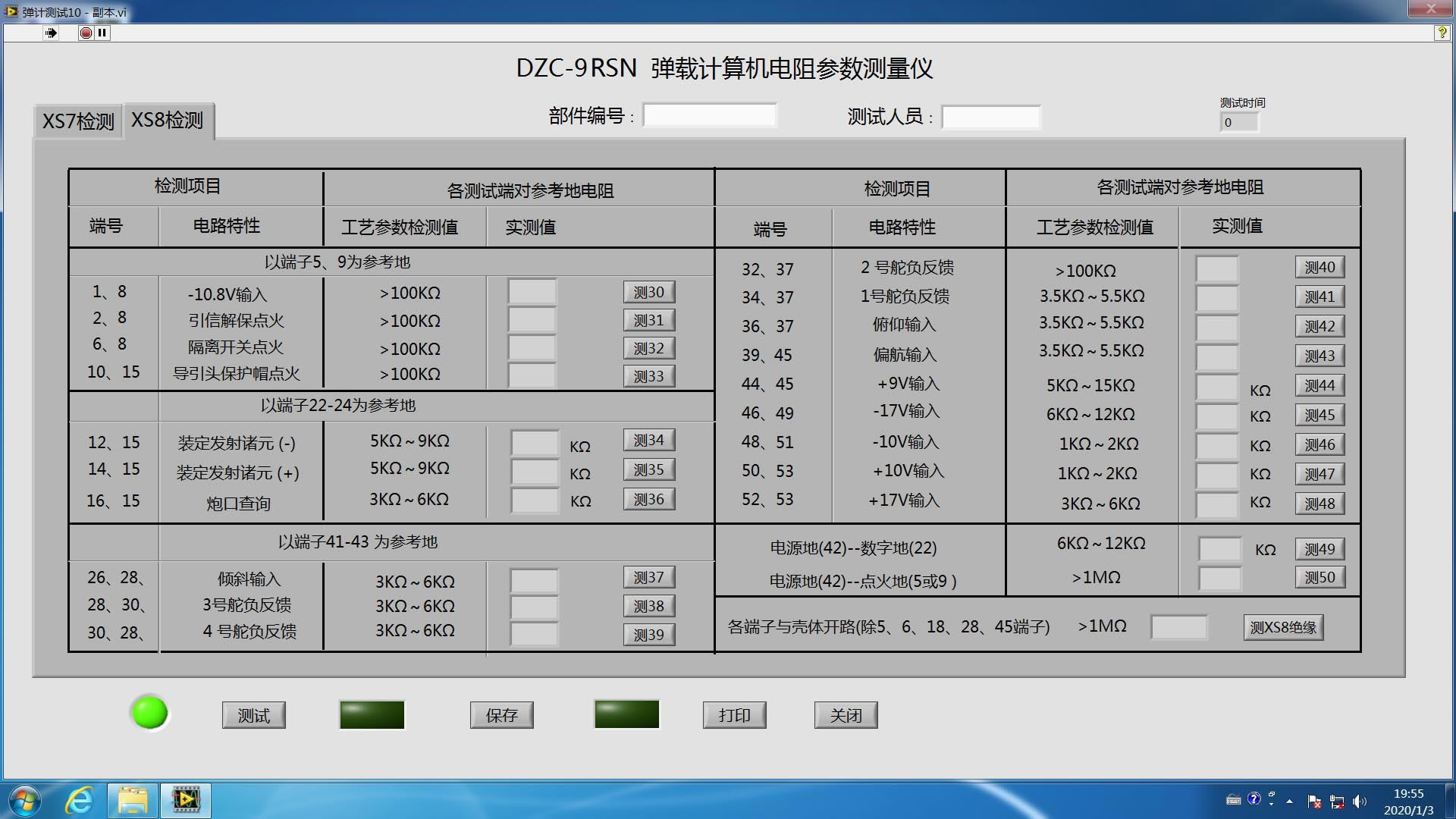 通过导弹上的航空接插件将测试点引入本测量仪器。可以测量导弹上的火工品、开关、接插件的低电阻。也可以模拟MF35或MF500机械万用表的R*1K量程测量高电阻。